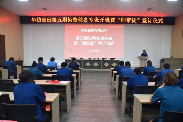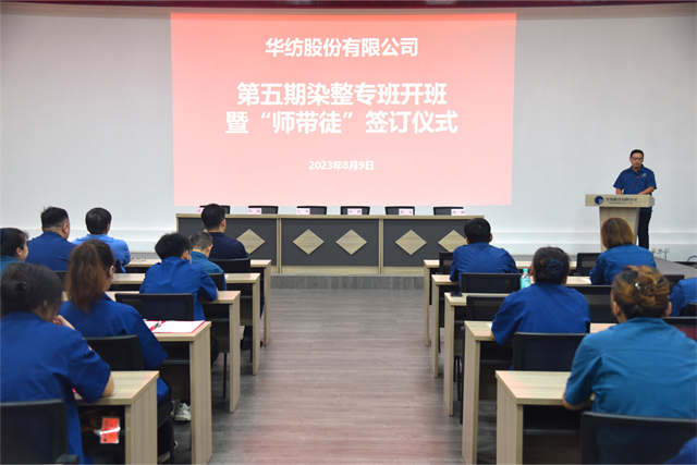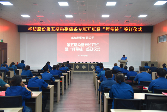 導讀:8月9日,公司舉行第五期染整技術儲備人才專班開班暨“師帶徒”簽訂儀式。